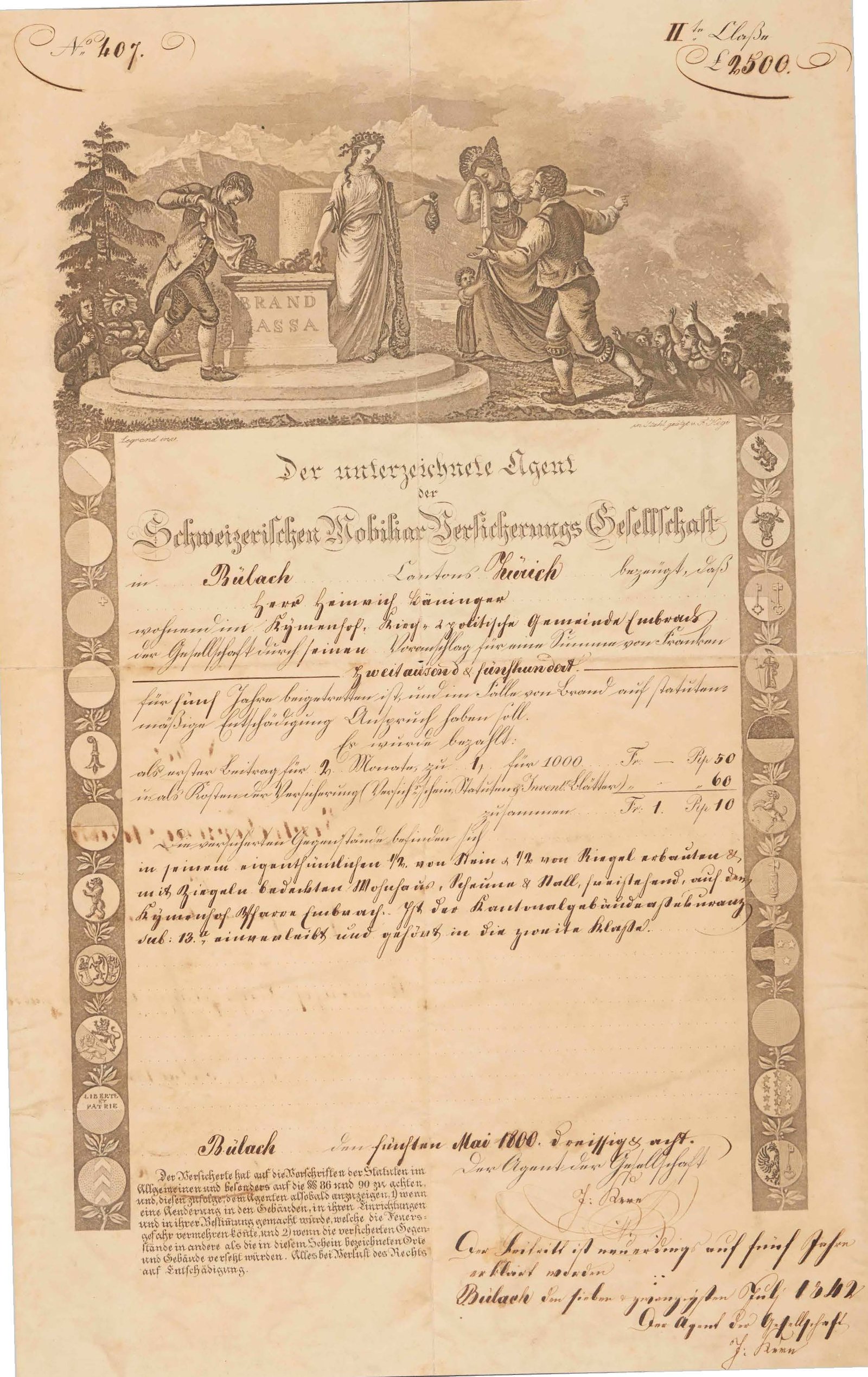 Très tôt, peu après sa création, la Mobilière dispose d’agents dans la région. Les archives font état pour la première fois du site de Bülach en 1838, avec la mention de l’agent Kern. Le site d’Embrach apparaît, quant à lui, dans les relevés dès l’année 1827.