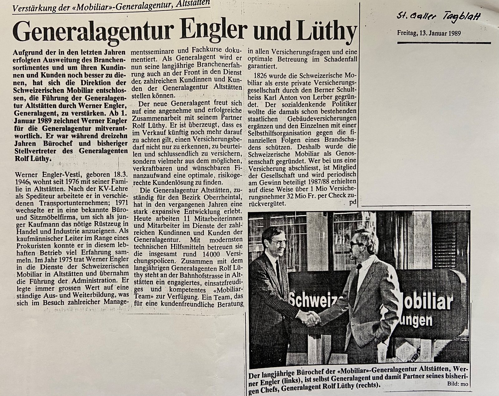 De 1935 à 1966, l’agence générale d’Altstätten est dirigée par deux membres de la même famille: d’abord Rudolf Lüthy-Kolb, puis son fils Rolf Lüthy.