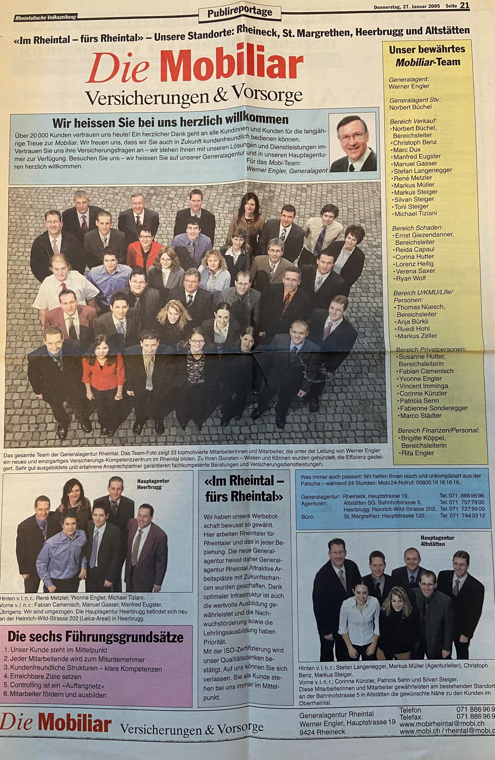 En 2005, les agences générales de Rheineck et d’Altstätten fusionnent pour devenir l’agence générale du Rheintal. C’est à Werner Engler, agent général, que l’on doit le nom de l’agence issue de la fusion. Il la dirige d’abord à Rheineck, puis en déplace le siège sur son site actuel de Heerbrugg, en 2008.