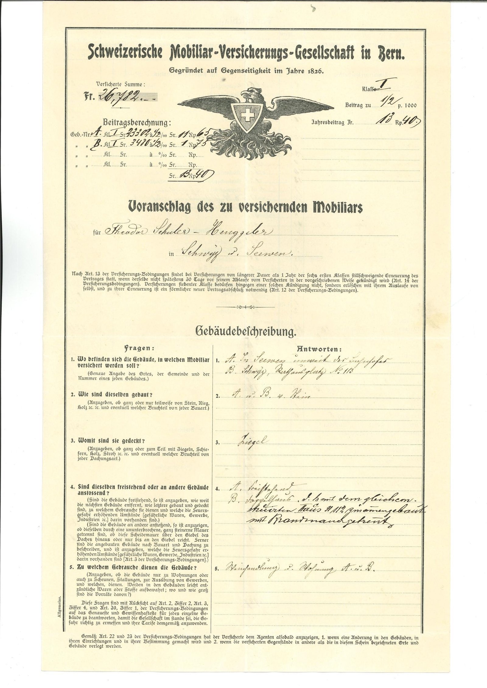 Des agents de la Mobilière sont présents dans la région dès la création de l’entreprise: des documents historiques mentionnent le site de Schwyz en 1826/1827 déjà. Le premier agent, un certain Suter, est avocat.