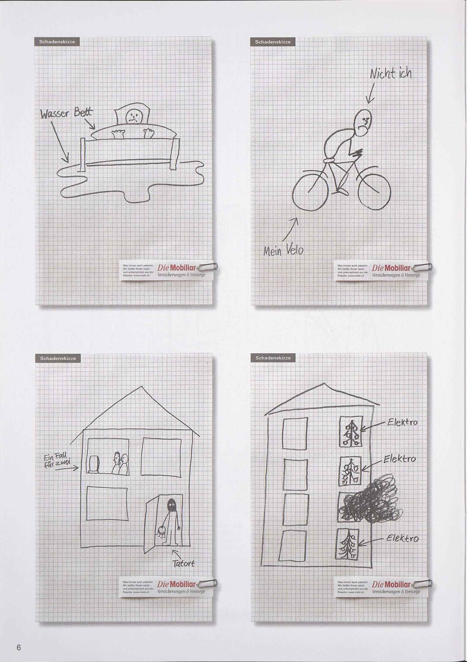 Extraits du recueil constitué à l’occasion du lancement des croquis de sinistre en 1998: «Je vous écris aujourd’hui pour la première et la dernière fois. Sans réponse de votre part, je vous écrirai à nouveau.» – «Mon fils n’a pas renversé la femme, il est juste passé devant elle en courant. Le souffle de l’air a fait tomber la femme.» – «Je ne peux pas dire qui a volé mon portefeuille, car il n’y avait personne de ma famille à proximité.» – «Vos arguments sont vraiment faibles. Je vous conseille de trouver plus idiot que moi avec des mauvaises excuses de ce genre, mais ce sera difficile.» – «La vitre est cassée. Je vous en envoie un morceau pour que vous puissiez voir que c’est vrai, sinon elle serait encore entière.»
