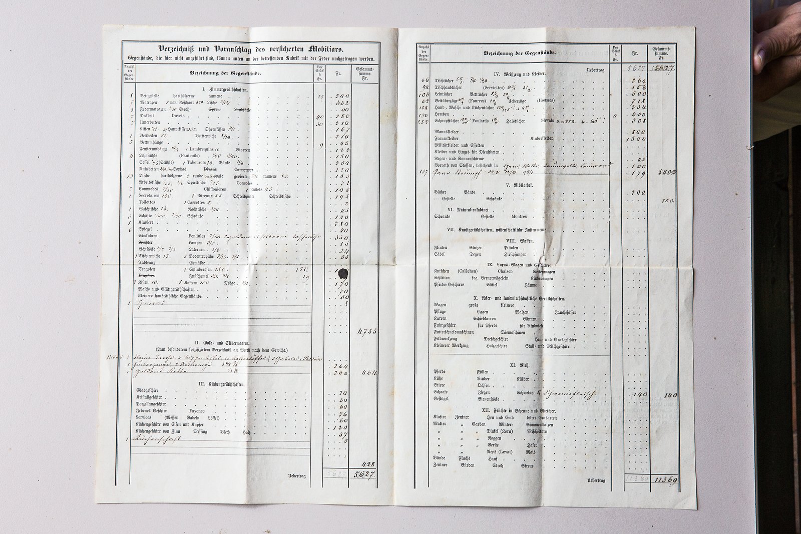 Matthias Brefin est assis dans l’atelier de son arrière-arrière-grand-père, à Anet. Il a en main un contrat d’assurance dans lequel l’agent de la Mobilière a dressé la liste de l’inventaire du ménage: huit sommiers, treize tables, 252 mouchoirs, vêtements de femme et d’enfant pour une valeur de 1300 francs, tableaux et toiles en cours ou achevés d’une valeur de 2000 francs, etc. Date: 6 septembre 1869. Signature du client: Albert Anker, peintre.