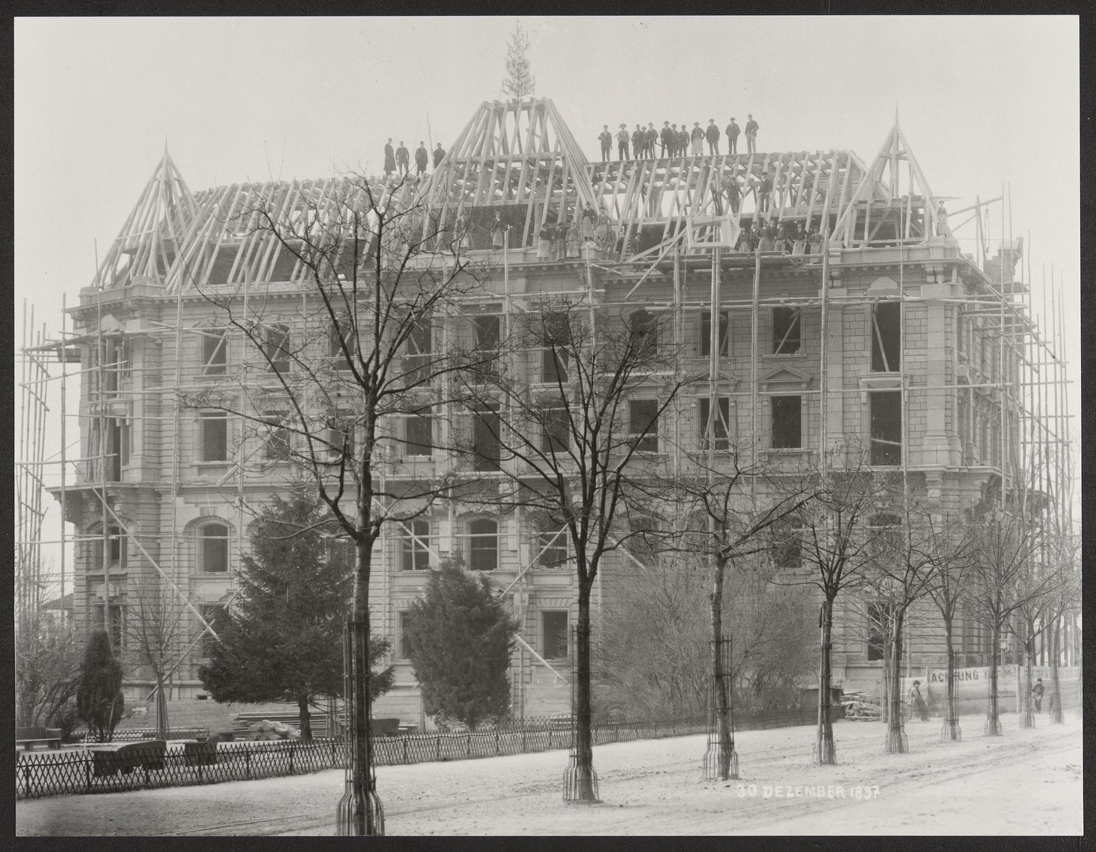 Où la Mobilière doit-elle maintenant installer ses quartiers? Faut-il rester à Berne? Tenter l’aventure à Zurich? Selon le procès-verbal du Comité de direction de l’époque, un déménagement à Zurich laissait dubitatif: on ne fait pas des affaires sérieusement dans cette ville, peut-on y lire. C’est ainsi qu’en 1896, un deuxième chantier voit le jour non loin de celui du bâtiment du Parlement: le nouveau siège de la Mobilière. La ville de Berne lui a fourni un terrain de choix à l’angle de la Schwanengasse et de la Bundesgasse. Deux ans plus tard, en décembre 1898, le personnel, qui compte désormais vingt membres, y emménage.