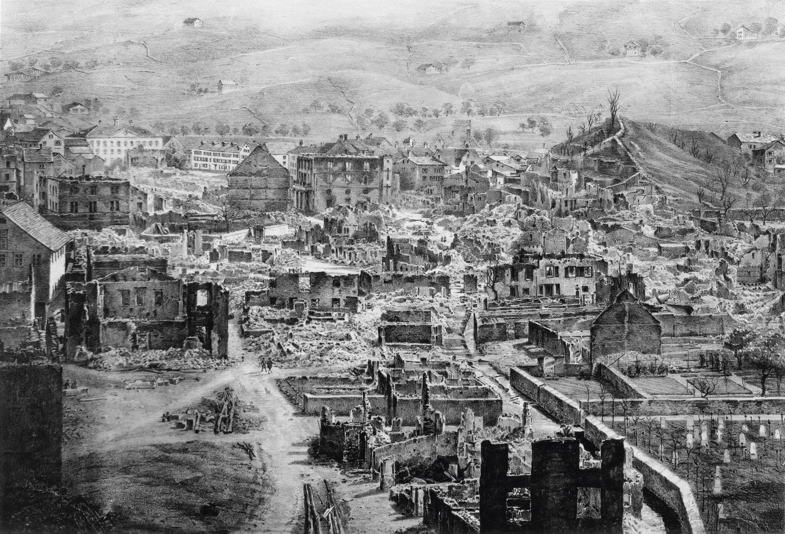 Le lendemain, les deux tiers de la ville sont réduits en cendres, près de la moitié des 5000 âmes n’ont plus de toit et plusieurs personnes ont péri dans les flammes. Les dommages aux bâtiments s’élèvent à 4,6 millions de francs et le mobilier calciné, à 4,1 millions. Des sommes astronomiques.