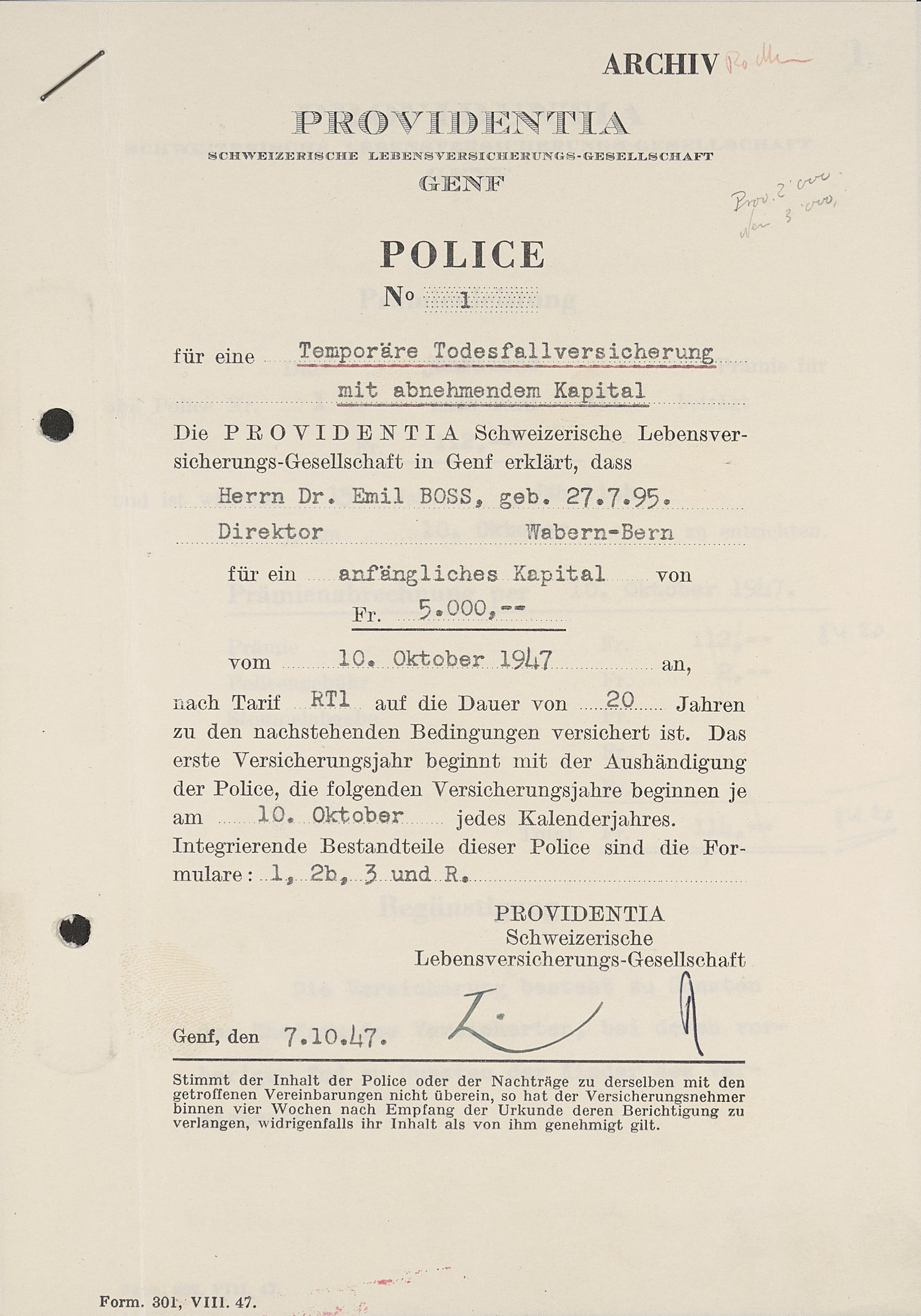 En 1896, la Mobilière lance une assurance vie, pour son personnel et à ses propres frais. Cinquante ans plus tard, en 1946, l’entreprise, qui n’était jusque-là opérationnelle que dans une poignée de branches d’assurance, élargit ses activités: elle fonde Providentia Société Suisse d’Assurances sur la Vie, conjointement avec Helvetia Incendie, la Nouvelle Ré et la Banque populaire suisse. Une extension bienvenue de son offre aux produits vie, alors de plus en plus demandés.